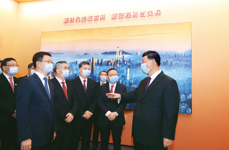 2020年10月14日,深圳经济特区建立40周年庆祝大会在广东省深圳市隆重举行。中共中央总书记、国家主席、中央军委主席习近平在会上发表重要讲话。这是当天上午,习近平等参观“从先行先试到先行示范——庆祝深圳经济特区建立40周年展览”。 新华社记者 鞠鹏/摄 在这次抗击疫情过程中,国有企业冲在前面,发挥了重要作用,在促进产业循环中也起到了关键作用。国有企业是中国特色社会主义的重要物质基础和政治基础,是党执政兴国的重要支柱和依靠力量,必须做强做优做大。当然,国有企业也要改革优化,但绝对不能否定、绝对不能削弱。要坚持和完善新型举国体制,不断增强领导力、组织力、执行力。